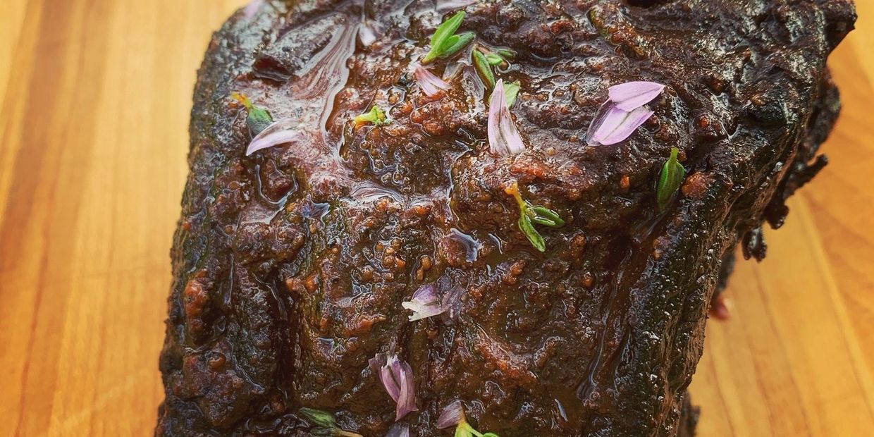 BBQ - Light the barbecue using the two-zone configuration (bank all the charcoal up on one side leaving the other side clear) and get the temperature to about 140°C. During the cook you will need to add charcoal to maintain a steady and even heat.