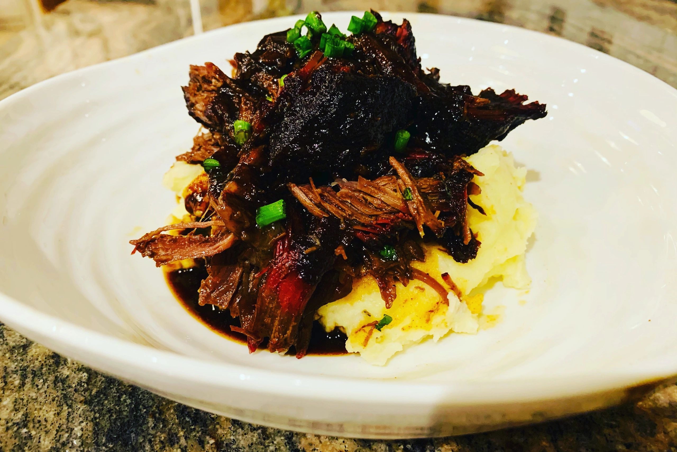I was inspired to create a southern American recipe using beef cheeks. These slow cooked beef cheeks are cooked three ways (smoked, steamed and braised in my interpretation of a famous Alabama Slammer cocktail) until they are so meltingly tender, you can eat it with a spoon!